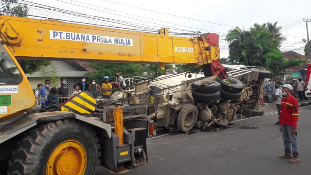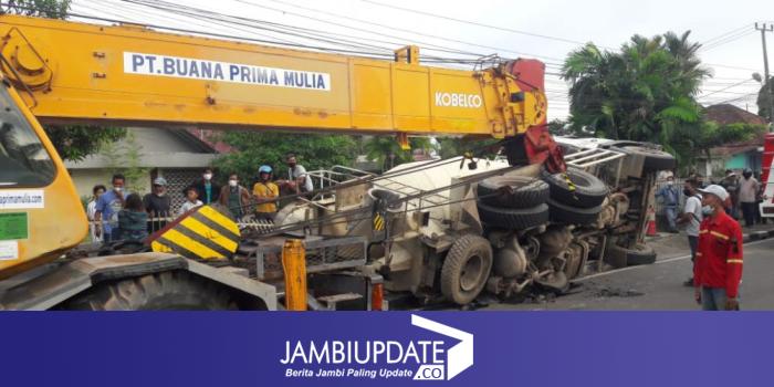 JAMBIUPDATE.CO, JAMBI- Satu Unit Truk Molen Bermuatan 14 Ton Semen menjadi korban diduga jalan raya amblas di Kawasan Jalan Slamet Riyadi No.01 RT.18, Kelurahan Solok Sipin, Kecamatan Telanaipura, Kota Jambi, pada Kamis (18/11).
