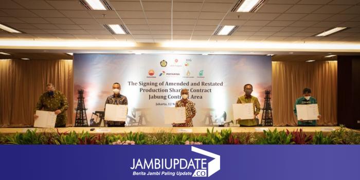 Proses penandatanganan perpanjangan kontrak Wilayah Kerja Jabung oleh SKK Migas dan anggota Konsorsium Jabung berlangsung di Jakarta pada tanggal 12 November 2021.