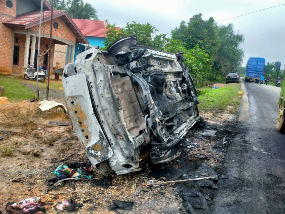 Lanjut Amran tiba tiba diperjalanan dari dalam mesin mobil mengeluarkan asap kemudian korban bersama anaknya langsung keluar untuk mengecek kondisi mobilnya, tidak lama kemudian mobil langsung terbakar dan korban bersama anaknya langsung menyelamatkan diri dan barang barang yang ada di dalam mobil.