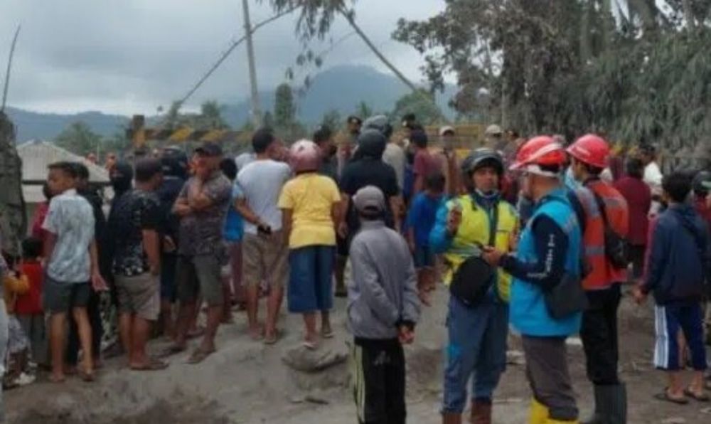 Warga berdatangan ke lokasi bencana letusan Gunung Semeru di Kecamatan Candipuro, Lumajang, Minggu (5/12/2021). (Radar Lumajang)