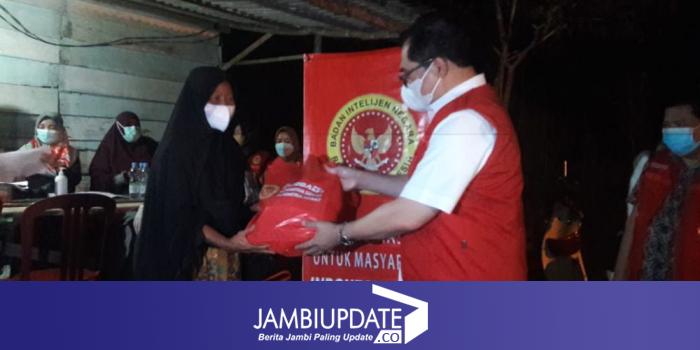 Selain vaksinasi, BIN Daerah Jambi juga memberikan bantuan sembako kepada warga yang menjadi peserta Vaksin yang diberikan langsung oleh Kabinda Jambi. (rhp).