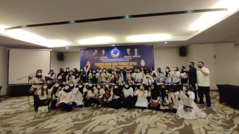 JAMBIUPDATE.CO, JAMBI - Partai Nasdem Provinsi Jambi terus melakukan konsolidasi dan pemantapan di Swiss-Belhotel, Sabtu (1/1) bertepatan tahun baru masehi, salah satu sayap Nasdem Garnita Malahayati melakukan Konsolidasi dan pemantapan struktur kepengurusan.