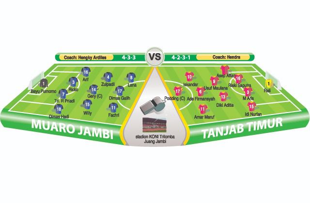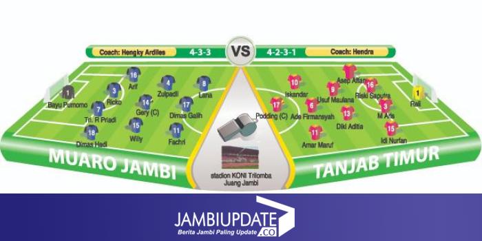 Muaro Jambi yang ditukangi oleh Legenda Semen Padang yang juga pernah berseragam Merah Putih Hengki Ardiles akan memainkan formasi 4-3-3, sementara Hendra pelatih Tanjab Timur akan bermain dengan pola 4-2-3-1.