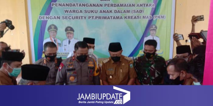 JAMBIUPDATE.CO, JAMBI- Wakapolda Jambi Brigjen Pol Yudawan Roswinarso menghadiri undangan acara syukuran perdamaian Adat antara Suku Anak Dalam (SAD) dengan security PT. Primatama Kreasi Mas (PKM) di Kecamatan Air Hitam, Sarolangun, pada Senin (10/01).