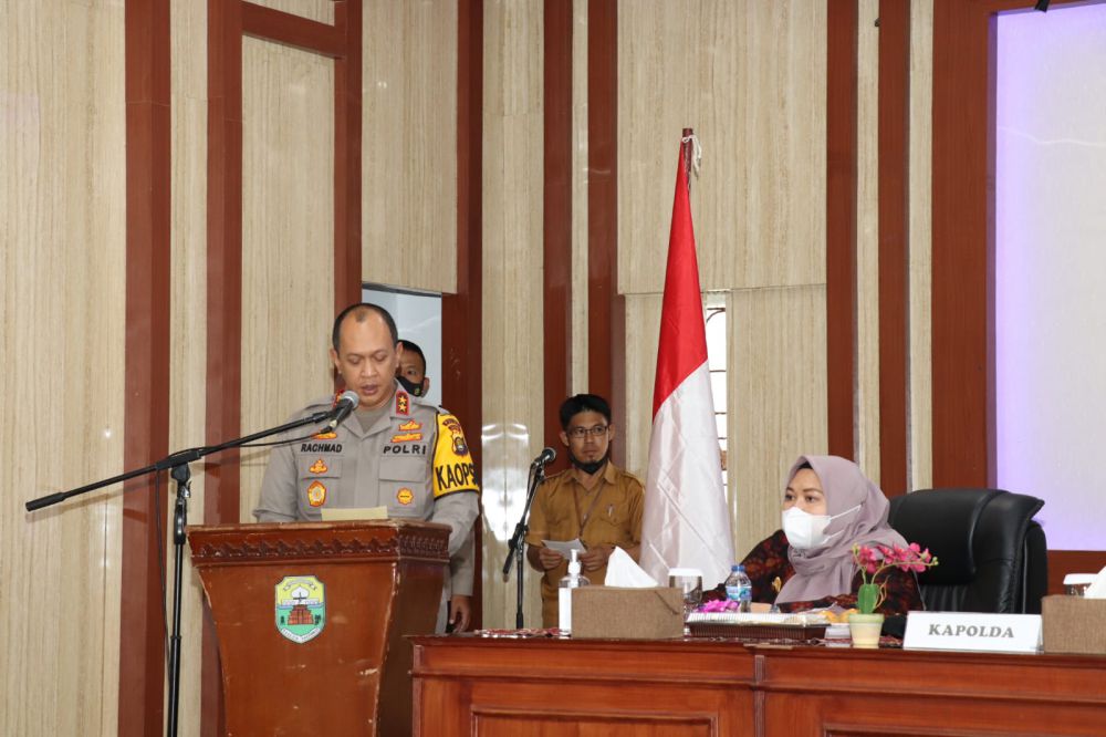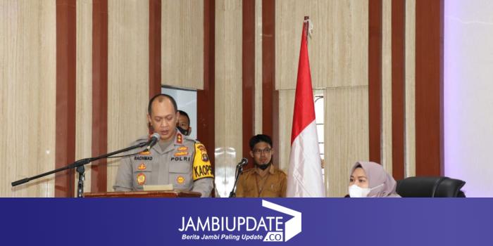 JAMBIUPDATE.CO, JAMBI- Kepala Kepolisian Daerah Jambi Irjen Pol A Rachmad Wibowo membuka langsung Rapat Koordinasi (Rakor) percepatan vaksinasi di Kabupaten Muaro Jambi, dengan target sasaran pelajar 100 persen divaksinasi, pada Selasa (11/1).