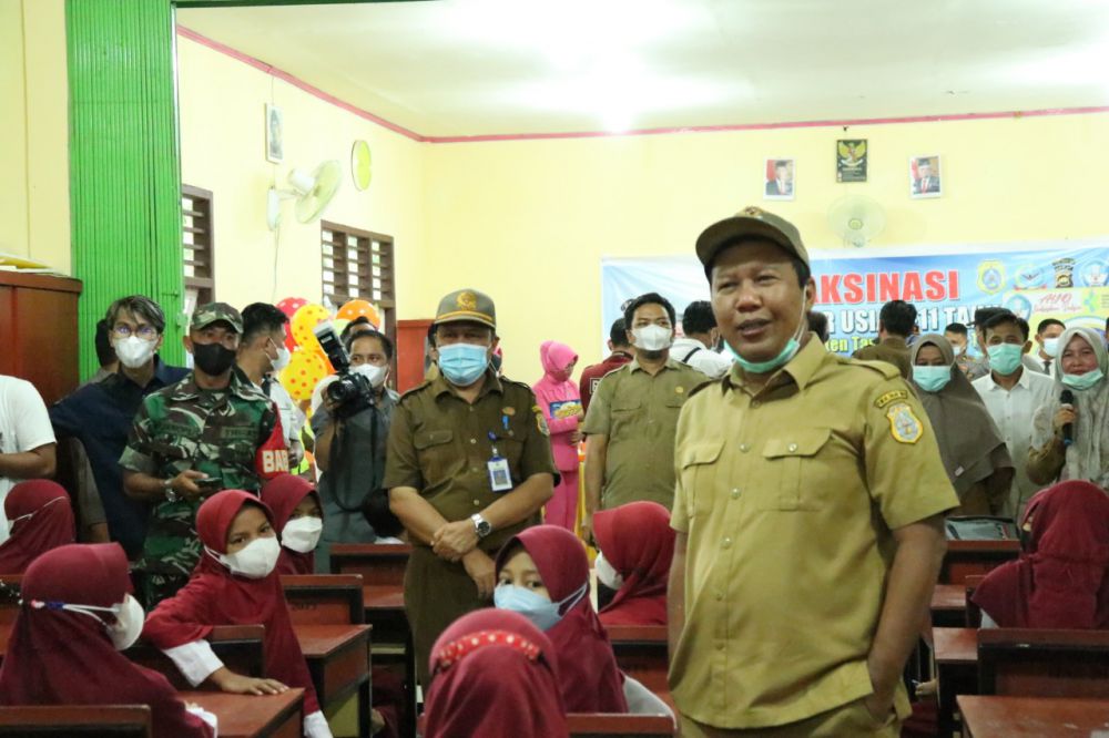 "Setiap Camat dan Kepala Sekolah saya minta konsen memastikan setiap anak ikut vaksinasi. Saya pantau langsung dan ini salah satu barometer kinerja khusus dan akan kita evaluasi," tegasnya.