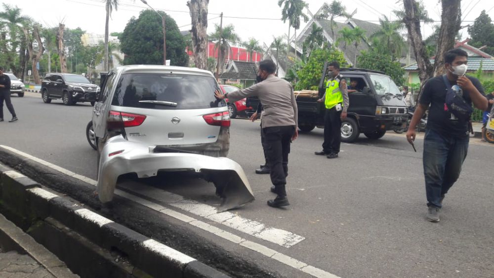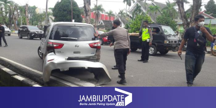 JAMBIUPDATE.CO, JAMBI- Telah terjadi kecelakaan di Jalan H. Agus Salim tepatnya di depan Gedung Olah Seni (GOS) Kota Baru, Kota Jambi, yang melibatkan mobil Pajero Sport Patwal Diltantas Polda Jambi dengan mobil Nissan Grand Livina dan dua pengendara sepeda motor Honda CBR dan Vario.