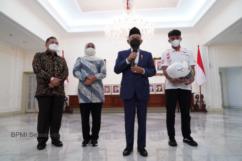 JAMBIUPDATE.CO, JAKARTA, Pembalap muda asal Magetan, Mario Suryo Aji, hari ini bertemu Wakil Presiden (Wapres) Ma’ruf Amin di Istana Wapres. Rider Honda Team Asia meminta doa sekaligus restu sebelum tampil di ajang Moto3 2022 .