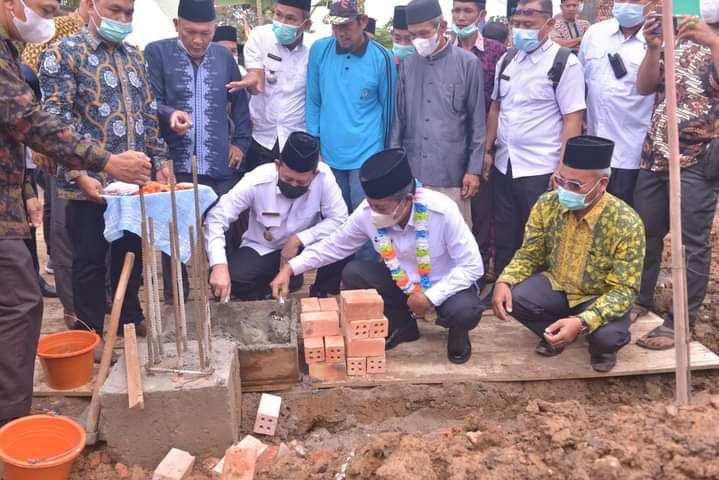 JAMBIUPDATE.CO, JAMBI- Wakil Bupati Muarojambi, Bambang Bayu Suseno, SP., MM., M. Si mendampingi Wakil Gubernur Jambi, Drs. H. Abdullah Sani., M. Pd. I hadiri acara peletakkan batu pertama pembangunan masjid Baitussalam di Desa Arang-Arang Kecamatan Kumpeh Ulu Kabupaten Muarojambi Rabu (2/2/22).
