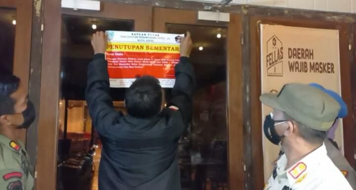 Pantauan dilapangan, tempat hiburan malam pertama yang menjadi sasaran yaitu Fellas Resto and Caffe yang berada di kawasan Thehok, Kota Jambi terpaksa disegel Tim Gabungan karena kedapatan masih beroperasi di atas pukul 22.00 WIB.