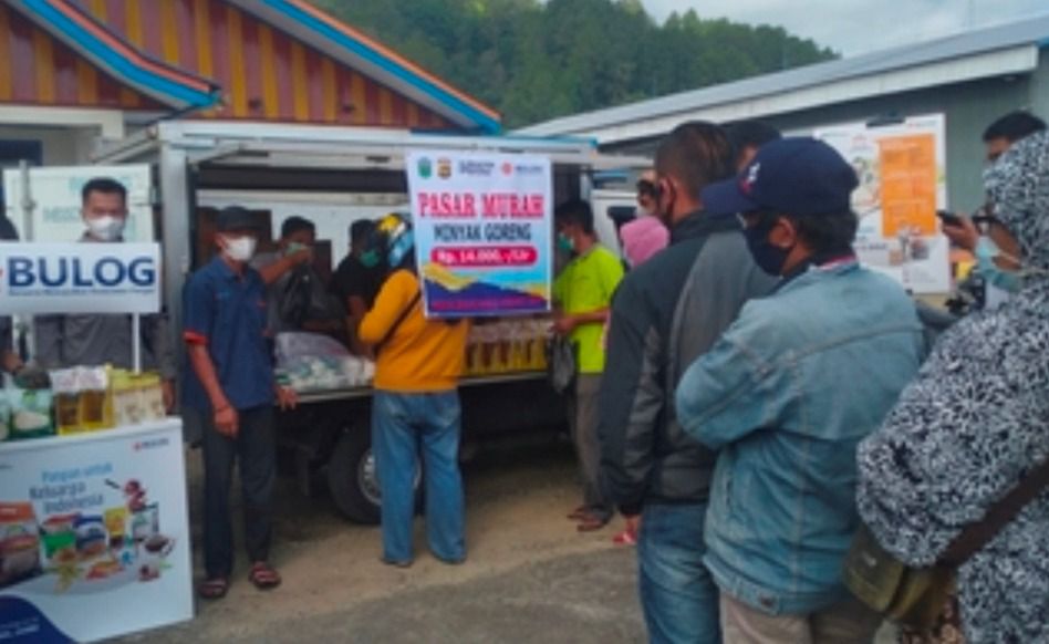 JAMBIUPDATE.CO, SUNGAIPENUH - Perusahaan Umum Badan Urusan Logistik (Perum Bulog) Kantor Cabang Kerinci, menggelar operasi pasar minyak goreng yang dipusatkan dihalaman Kantor Bulong Cabang Kerinci, Jum’at (18/02/2022).