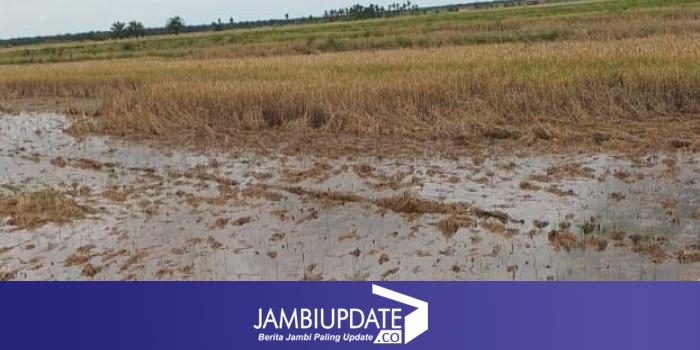 JAMBIUPDATE.CO, MUARASABAK - Akibat curah hujan tinggi yang mengguyur Kabupaten Tanjabtim beberapa hari terakhir ini, membuat lahan padi Kelompok Tani yang berada di Desa Simpang Datuk, Kecamatan Nipah Panjang terendam.