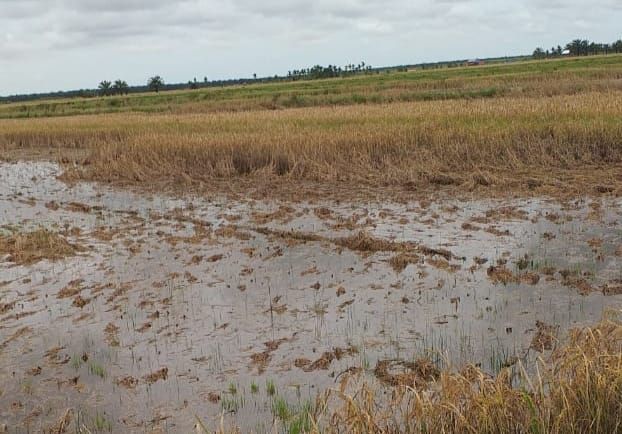 "Ada Tiga batang parit lahan padi kita. Kalau keseluruhan, mungkin lebih dari 900 hektar, tapi yang terendam itu juga ratusan," katanya.