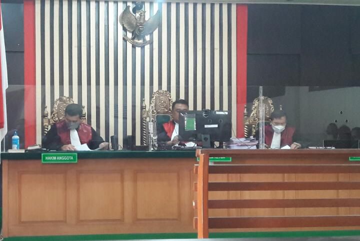Sidang dipimpin oleh Hakim Ketua Yandri Roni, didampingi dua orang Hakim Anggota Yofsitian dan Bernard Panjaitan, tampak hadir juga dari unsur Jaksa Penuntut Umum (JPU) Kejari Tanjab Timur Ali, serta Kuasa Hukum terdakwa, bertempat di ruang Kartika Pengadilan Negeri Jambi.