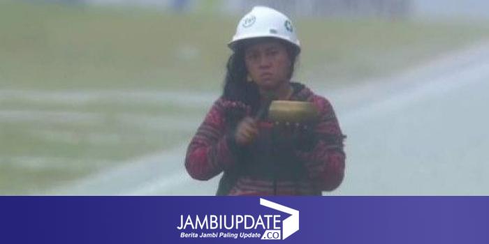 Rara Isti Wulandari (Mbak Rara) saat beraksi menghalau hujan yang mengguyur sirkuit MotoGP Mandalika-MotoGP-Twitter