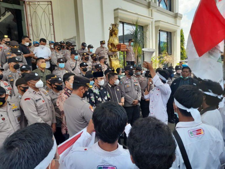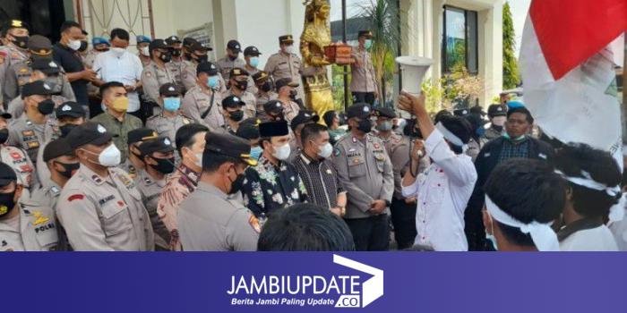 JAMBIUPDATE.CO, JAMBI - Ketua DPRD Provinsi Jambi Edi Purwanto menerima aksi unjuk rasa dari Kesatuan Aksi Mahasiswa Muslim Indonesia (KAMMI) Provinsi Jambi, Kamis (24/3/2022).