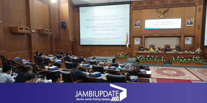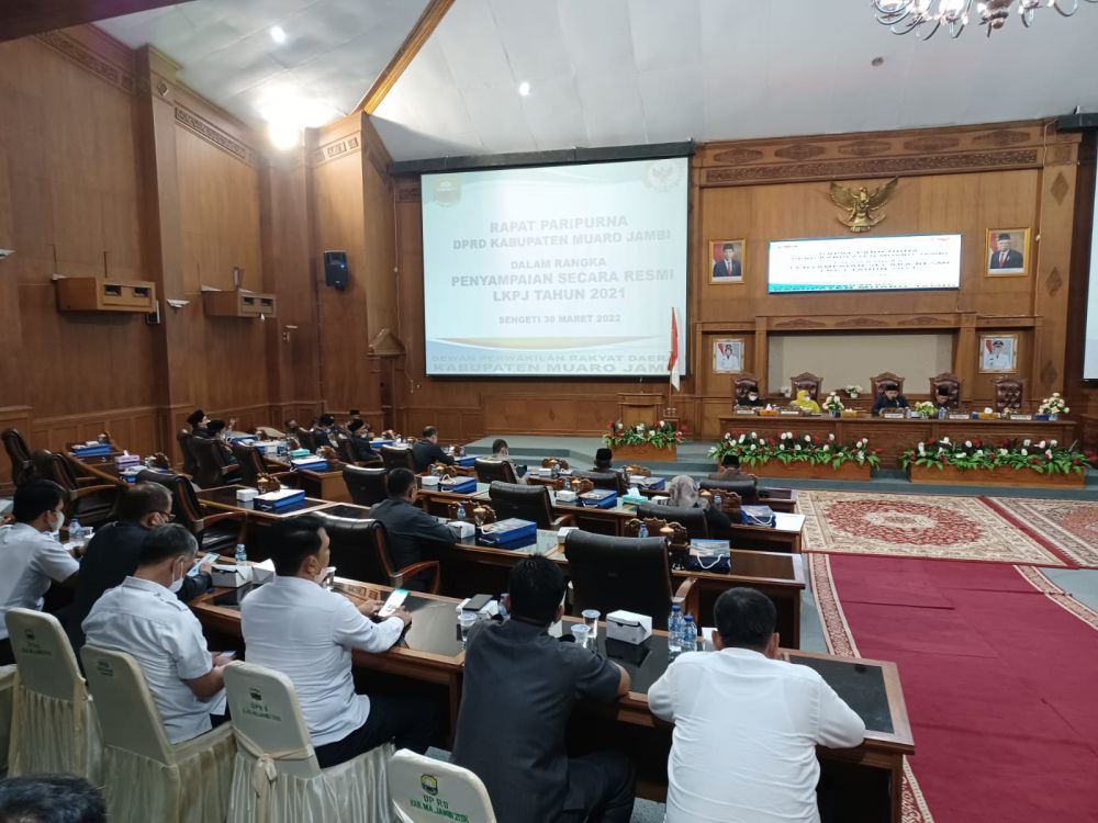 JAMBIUPDATE.CO, MUARO JAMBI- Rapat Paripurna DPRD Kabupaten Muaro Jambi dalam rangka penyampaian secara resmi LKPJ tahun 2021 terlihat lengang.