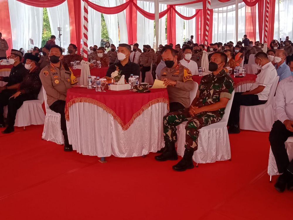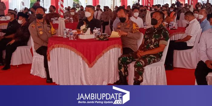 Bertempat di lapangan hijau Mapolresta Jambi, dipimpin langsung Kapolda Jambi Irjen Pol Rachmad Wibowo, turut hadir Irwasda Polda Jambi Kombes Pol Raden Heru Prakoso, Karo Log Kombes Pol Arif Dwi Koeswandhono, Pejabat Utama Polda Jambi dan jajaran, Walikota Jambi Syarif Fasha, Ketua Balai Adat Provinsi Jambi beserta Forkopimda Kota Jambi.