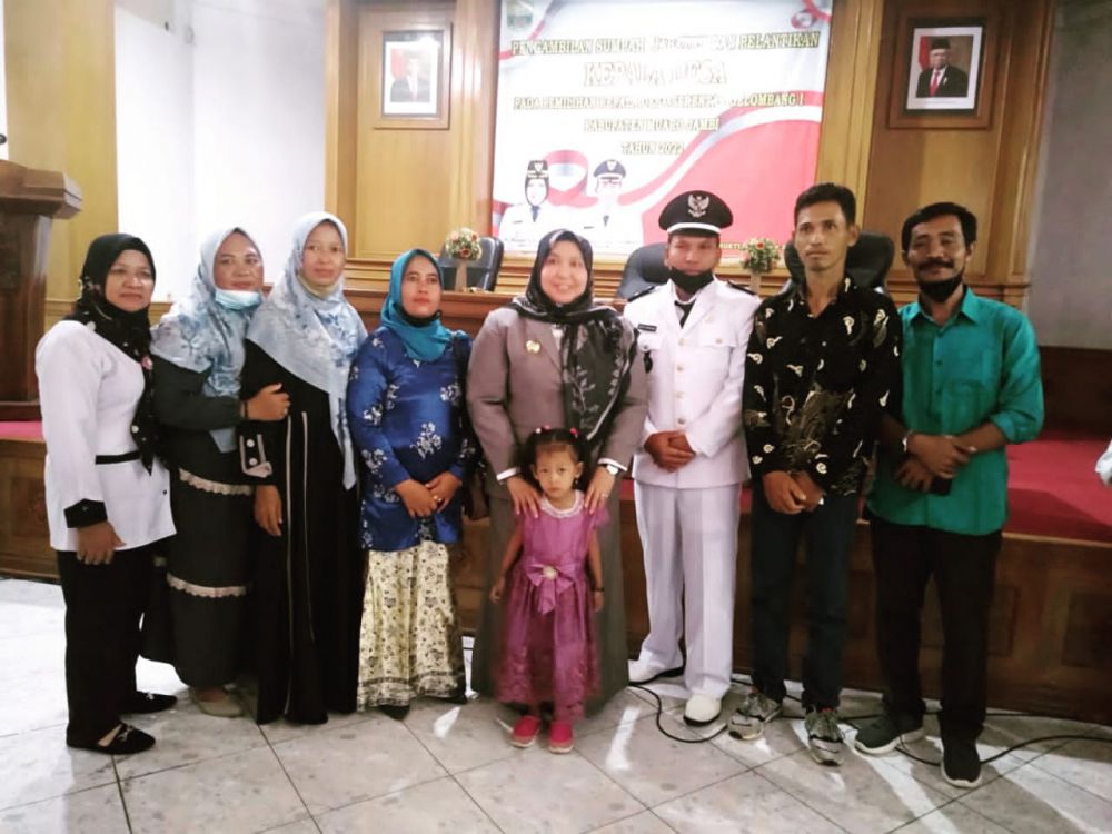 Menariknya, Pelantikan Kepala Desa Tri Mulya Jaya yang dilaksanakan di Aula Kantor Bupati Muaro Jambi dan dilantik langsung oleh Masnah Busro, Rabu 06/04/22. Moch Nuryasin didampingi Imam Baidowi Ketua BPD Desa Tri Mulya Jaya.