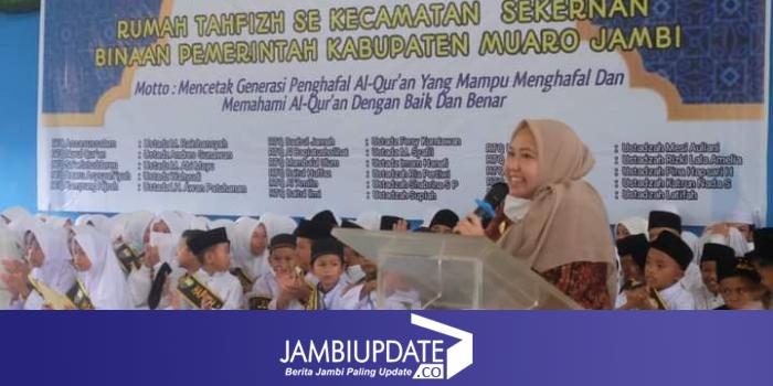 JAMBIUPDATE.CO, MUARO JAMBI- Bupati Muaro Jambi Hj. Masnah Busro, SE, M.Tr.IP, menyatakan bahwa Pemerintah Muaro Jambi berupaya untuk mencetak kader dan generasi penerus, yang berilmu, berakhlak beriman dan bertakwa, sehingga nantinya akan bermunculan terus kader- kader hafidz Al-Qur'an di Kabupaten Muaro Jambi.