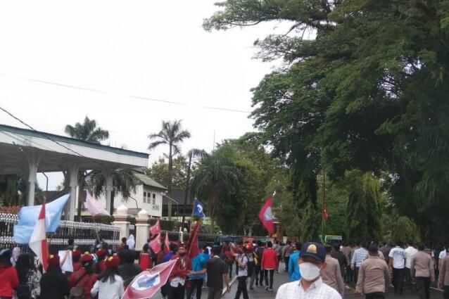 JAMBIUPDATE.CO, JAMBI- Menyambut kedatangan Presiden RI Ir Joko Widodo di Jambi, aliansi gabungan mahasiswa cipayung plus membawa 3 tuntutan, pada Kamis (7/4).