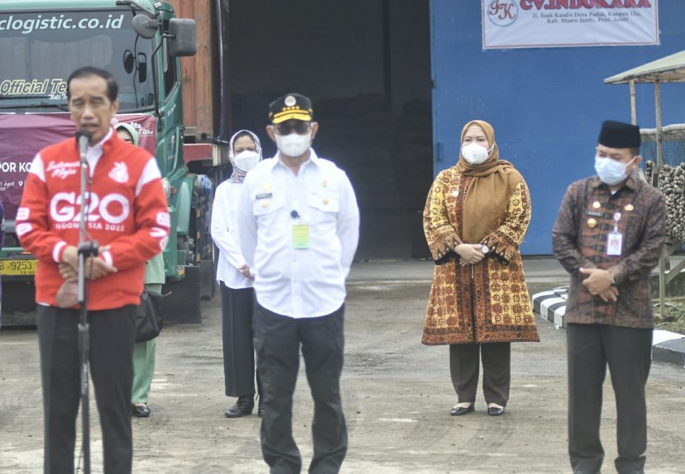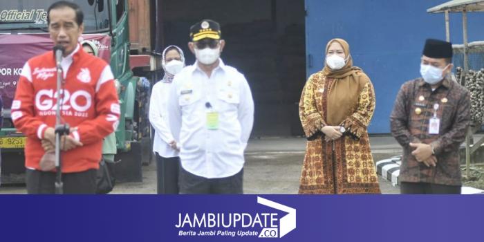 JAMBIUPDATE.CO, MUARO JAMBI- Bupati Muaro Jambi Hj. Masnah Busyro, SE., M.Tr.IP bersama Gubernur Jambi Drs. H. Al Haris., S. Sos., MH dan Wakil Gubernur Jambi Drs. H. Abdullah Sani., M. Pd. I mendampingi Presiden Republik Indonesia Ir. H. Joko Widodo dalam kunjungan kerjanya ke Pabrik Pinang CV Indokara, Desa Pudak,Kumpeh Ulu, Muaro Jambi.