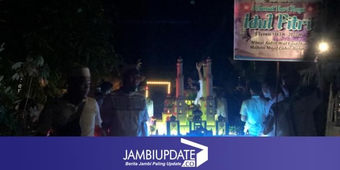 Dalam kesempatan ini ratusan masyarakat Desa Teluk Majelis, Kecamatan Kuala Jambi sangat antusias mengikuti pawai Takbir keliling sambil menyalakan kembang serta di ikuti tampilan miniatur masjid.