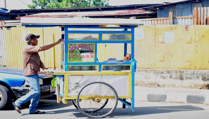 JAMBIUPDATE.CO, JAKARTA - Seorang tukang bakso sambil mendorong gerobaknya masuk ke dalam jalan tol Tangerang-Jakarta.