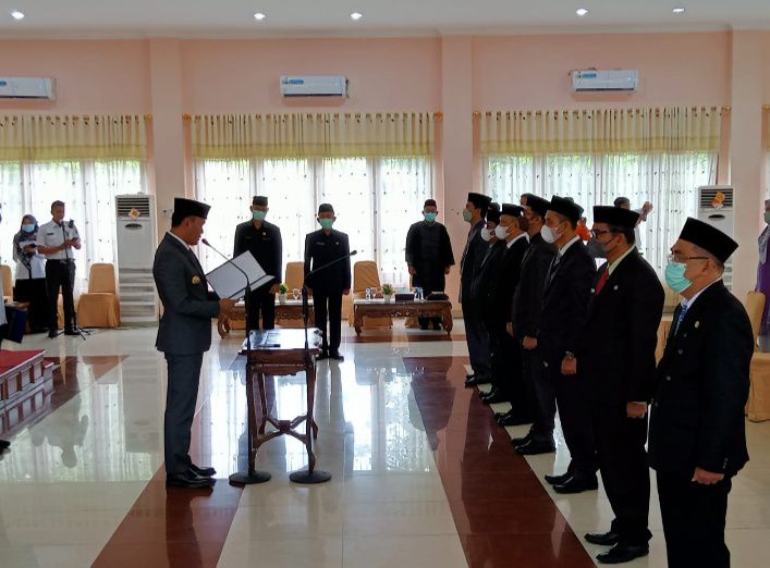 Dihadapan Oara Forkopimda, Para Kepala OPD dan Tamu lainya, Bupati Sukandar dalam sambutannya.menyampaikan ucapan selamat kepada pejabat yang baru saja dilantik dan diharapkan mampu mewujudkan visi misi Tebo tuntas 2022 dan program Pj Bupati nantinya.