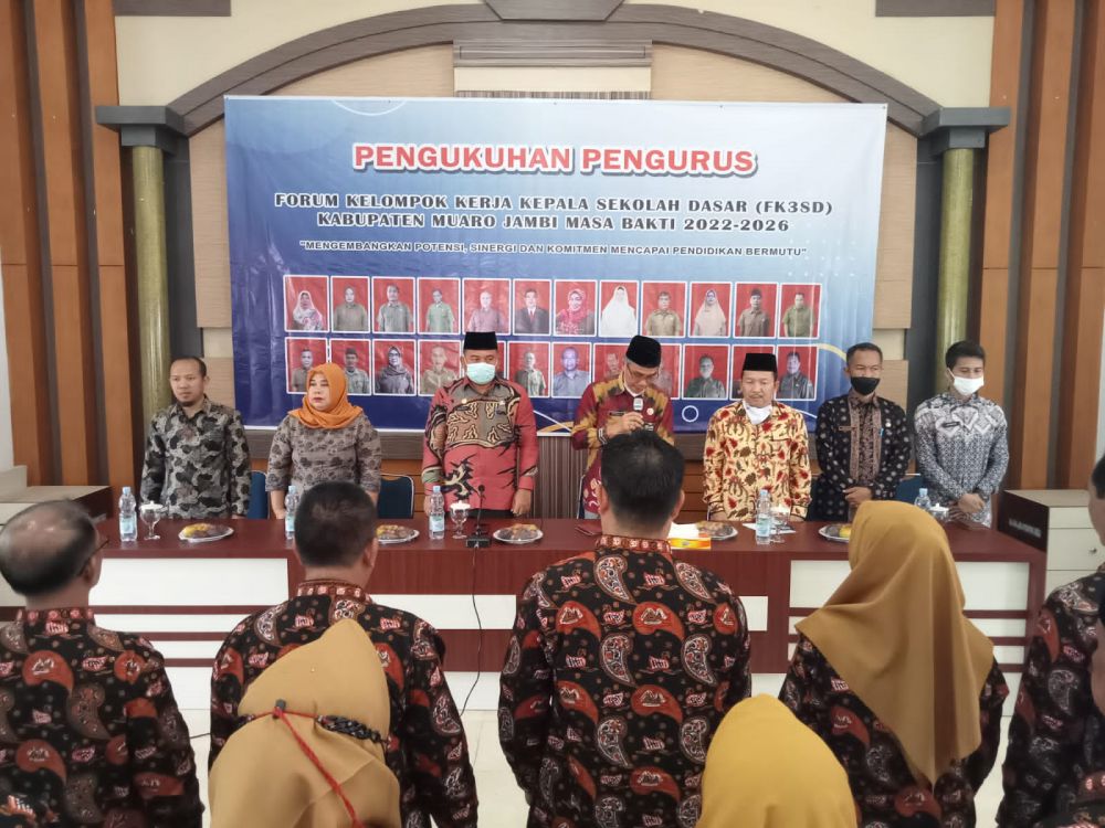 Pengurus FK3SD Kabupaten Muaro Jambi masa bakti 2022 - 2026 dikukuhkan langsung oleh Kadis Pedidikan dan Kebudayaan Kabupaten Muaro Jambi H. Erwanisah.