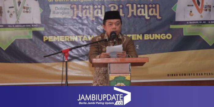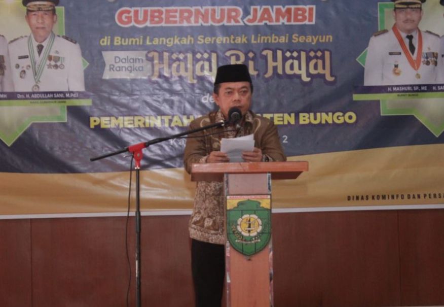 JAMBIUPDATE.CO, BUNGO - Gubernur Jambi, Dr.H.Al Haris,S.Sos.,M.H., menegaskan, Pemerintah Provinsi Jambi akan fokus dalam melaksanakan pemerataan pembangunan disetiap Kabupaten/Kota guna mewujudkan kemajuan bagi Provinsi Jambi. Hal ini ditegaskan Al Haris pada acara Halal Bil Halal Idul Fitri 1443 H di Kabupaten Bungo, bertempat di Auditorium Rumah Dinas Bupati Bungo, Kamis (19/05/2022).