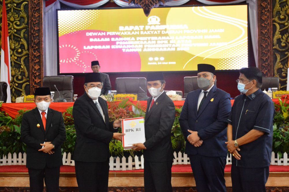 Berita acara serah terima LHP BPK RI ditandatangani langsung oleh Ketua DPRD dan Gubernur Provinsi Jambi, serta Kepala Perwakilan BPK RI. Penandatanganan kemudian dilanjutkan dengan Penyerahan LHP BPK RI itu sendiri, dari Staf Ahli Bidang Lingkungan Hidup dan Pembangunan Berkelanjutan BPK RI Dr Edward Ganda Hasiholan Simanjuntak dengan Ketua DPRD dan Gubernur Provinsi Jambi.