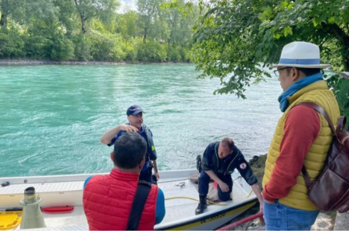 Emmeril Kahn Mumtadz hilang terseret derasnya sungai Aare, Bern, Swiss pada Kamis 26 Mei 2022.
