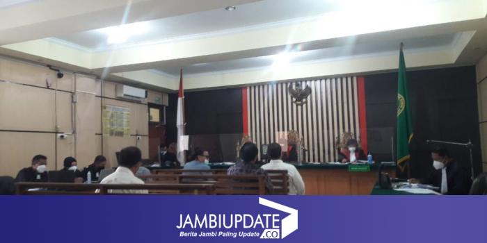 Bertempat di ruang kartika Pengadilan Negeri Tipikor Jambi, dipimpin Hakim Ketua Yandri Roni dan didampingi dua Hakim Anggota yakni, Yofiatian dan Hiasinta Manalu, dan turut hadir 3 orang Jaksa Penuntut Umum serta Kuasa Hukum terdakwa.