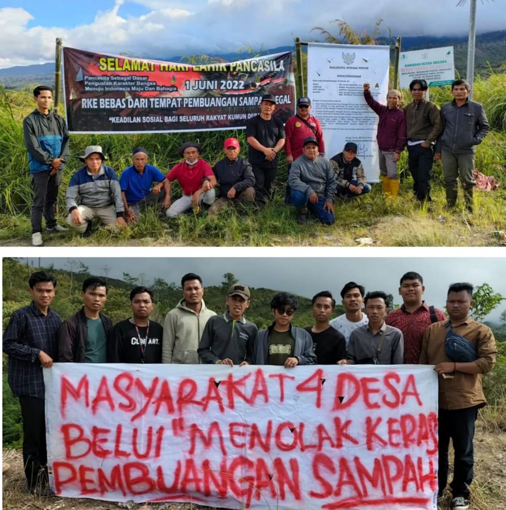 Para pemuda yang melakukan aksi dengan menebang beberapa batang pohon dan dilintangkan di jalan selain itu mereka membuat tulisan di spanduk berisi Masyarakat 4 Desa Belui Menolak Keras Pembangunan Sampah. Para Kades wilayah Belum juga menolak KM14 jadi tempat pembubaran sampah karena akan merusak lingkungan.