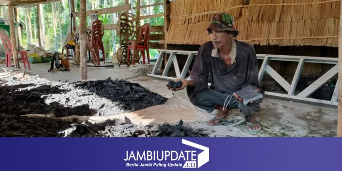 Pak De Guntor, begitu ia biasa disapa. Warga Desa Teluk Kulbi Kecamatan Betara, Kabupaten Tanjung Jabung Barat. Dirinya berinovasi memanfaatkan limbah pelepah pinang tersebut menjadi briket arang.