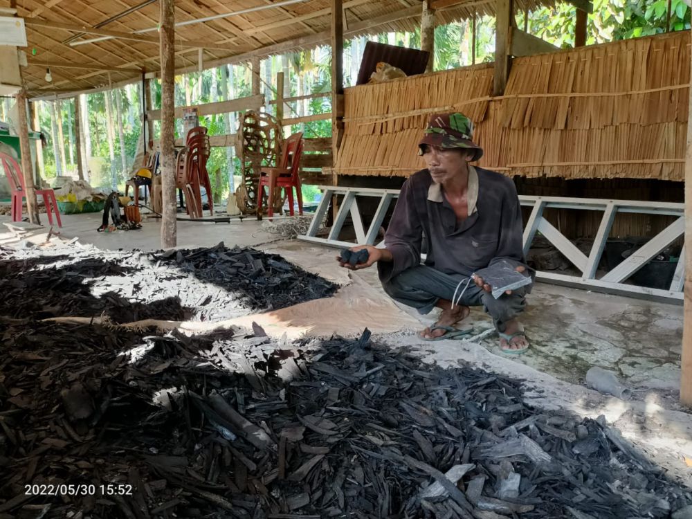 Sebelumnya, dirinya belum pernah membuat arang, namun berkat pengetahuan yang ia miliki, plus tanya sana sini, ia berhasil membuat upih pinang menjadi arang kemudian dibuat briket.