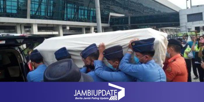 Kedatangan jenazah disambut pihak keluarga dan sejumlah menteri, seperti Menteri BUMN Erick Thohir dan Menteri Sekretaris Negara Pratikno.