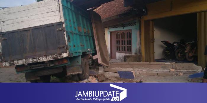 JAMBIUPDATE.CO, MUARO JAMBI- Truk pengangkut batu bara bernopol BG 8289 BS menabrak rumah warga di Kasang Kota Karang, Muaro Jambi, Selasa (14/6). Akibat kejadian ini, teras rumah milik Suparman (49), warga RT 01 desa setempat mengalami kerusakan.