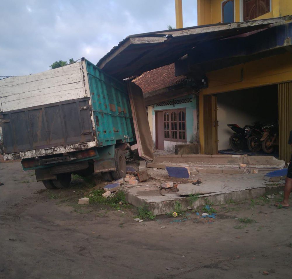"Dari keterangan sopir menghindari binatang yang melintas mendadak, banting setir ke kanan selanjutnya menghantam teras rumah warga hingga hancur," kata Bripka Rahmad.