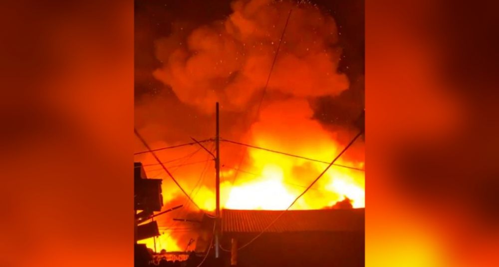 Kebakaran yang terjadi sekitar pukul 19.00 WIB ini membuat malam yang gelap menjadi terang akibat besarnya kobaran api.