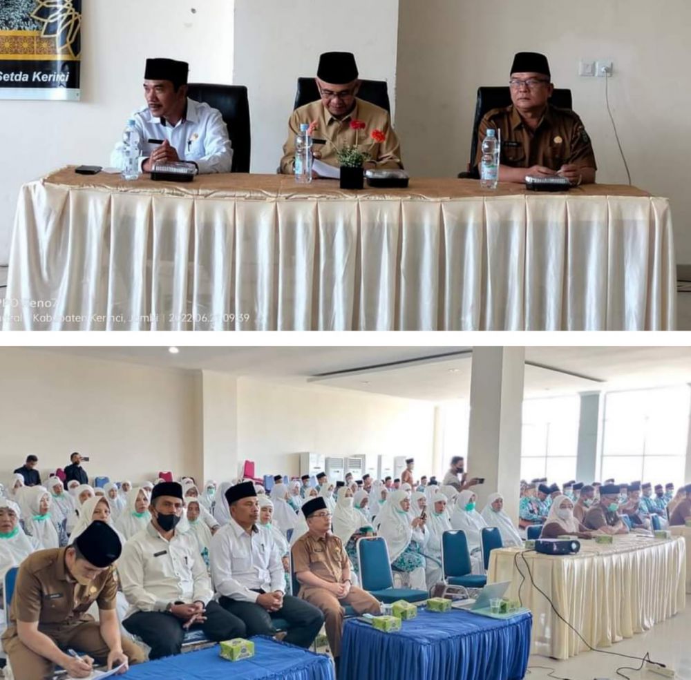 JAMBIUPDATE.CO, KERINCI- Sebanyak 121 calon haji Kabupaten Kerinci dilepas bupati Adirozal bersama Kepala Memenag Kerinci Pahrizal Zain yang bertempat di aula kantor Bupati, Selasa (21/06/2022). Keberangkatan calon haji Kabupaten Kerinci tahun 2022 ini merupakan perdana sejak pandemi Covid-19.