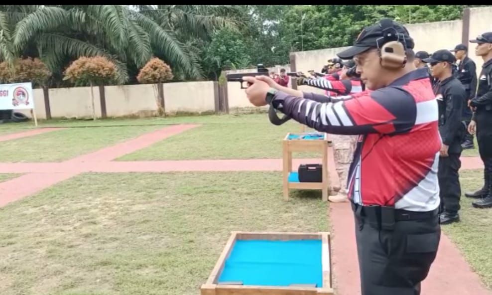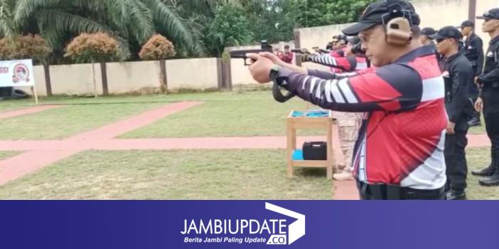 JAMBIUPDATE.CO, JAMBI- Polda Jambi menggelar lomba menembak dalam rangkaian Hari Bhayangkara Ke-76. Lomba bertempat di lapangan tembak Singa Kartipala Maskosat Brimobda Jambi, Kamis (25/6/2022).
