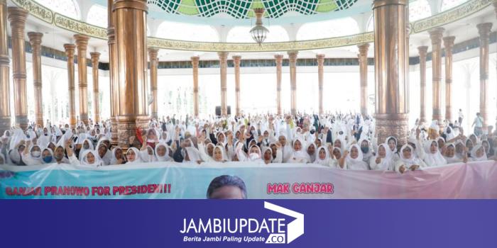 JAMBIUPDATE.CO, JAMBI- Ribuan emak-emak di Jambi mengatasnamakan Mak Ganjar Jambi menyelenggarakan Doa Bersama dan Selawat untuk Gubernur Jawa Tengah, Ganjar Pranowo menjadi Presiden 2024. Acara tersebut digelar di Masjid Agung Al-Falah, Telanaipura, Kota Jambi.