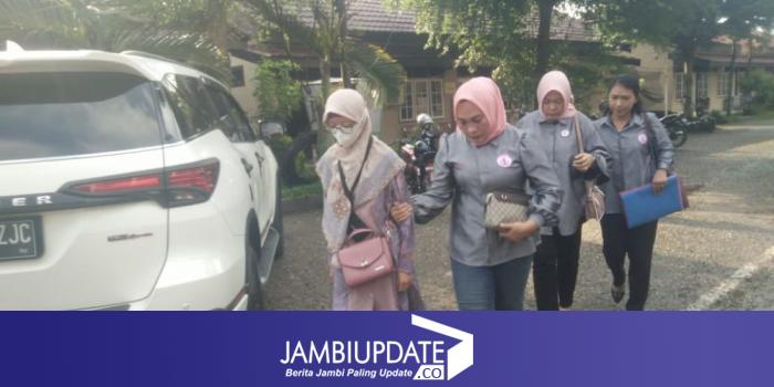 Korban NA didampingi sang ibu dan kuasa hukumnya melaporkan kasus tersebut ke Mapolresta Jambi, Selasa (28/6).