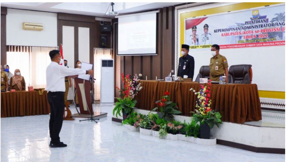 JAMBIUPDATE.CO, JAMBI – Wakil Gubernur Jambi, Drs.H.Abdullah Sani,M.Pd.I., mengemukakan, setiap pemimpin harus memiliki strategi yang inovatif dalam menjalankan amanahnya, dan mempunyai komitmen untuk bersedia mendengarkan setiap masukan serta kritikan demi tercapainya tujuan bersama. Hal tersebut dikemukakan Sani pada Pembukaan Pelatihan Kepemimpinan Administrator Angkatan VI Pemerintah Kabupaten / Kota se-Provinsi Jambi Tahun 2022, bertempat di Aula Kantor Badan Pengembangan Sumber Daya Manusia (BPSDM) Provinsi Jambi, Senin (04/07/2022).
