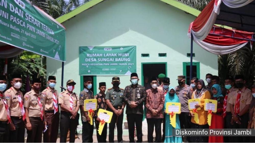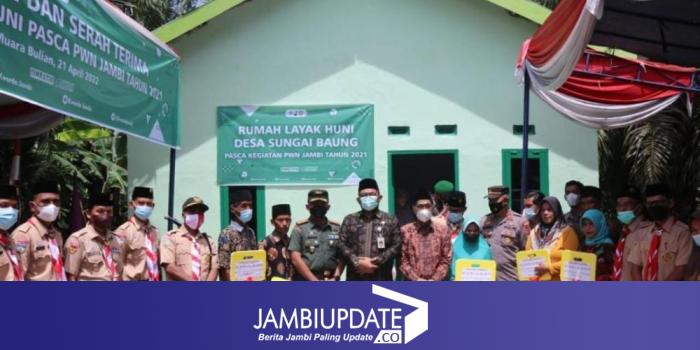JAMBIUPDATE.CO, JAMBI - Sekretaris Daerah Provinsi Jambi, Sudirman menyatakan, Program Bakti Fisik Perkemahan Wirakarya Nasional (PWN) Tahun 2021 yang merupakan bentuk pengabdian Gerakan Pramuka kepada masyarakat dan bentuk nyata sinergitas Pemerintah Provinsi Jambi bersama Gerakan Pramuka. Hal ini dinyatakan Sekda Sudirman saat memberikan sambutan dalam acara peresmian dan serah terima rumah program pasca PWN di Provinsi Jambi Tahun 2021, bertempat di Desa Sungai Baung Kabupaten Batanghari, Kamis (21/4/2022).