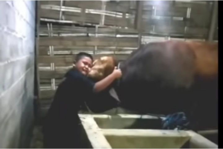 Dalam video, bocah itu terlihat sangat sedih dan suara tangisannya terdengar cukup keras saat memeluk sapi yang memiliki warna coklat itu.