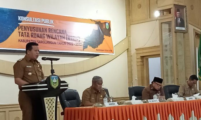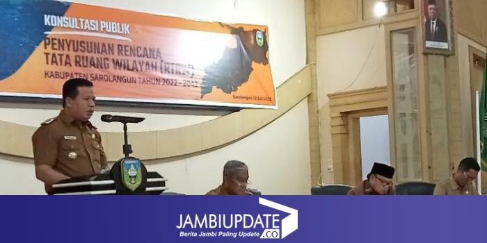JAMBIUPDATE.CO, SAROLANGUN - Pemerintah Kabupaten Sarolangun menggelar kegiatan Konsultasi Publik Penyusunan Rencana Tata Ruang Wilayah (RT/RW) Kabupaten Sarolangun tahun 2022-2042 di ruang pola Kantor Bupati Sarolangun, Selasa (12/07/2022).