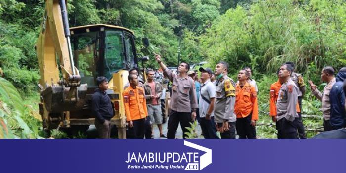 Kapolres Kerinci bersama PJU Polres, Personel Polres Kerinci dan Personel polsek sungai penuh lansung menuju lokasi longsor. Dibantu oleh dinas PUPR Kota Sungai penuh menurunkan satu unit alat berat, Kapolres kerinci beserta anggota lansung melakukan evakuasi jalan yang tertimbun longsor dan pohon tumbang yang menutupi badan jalan.